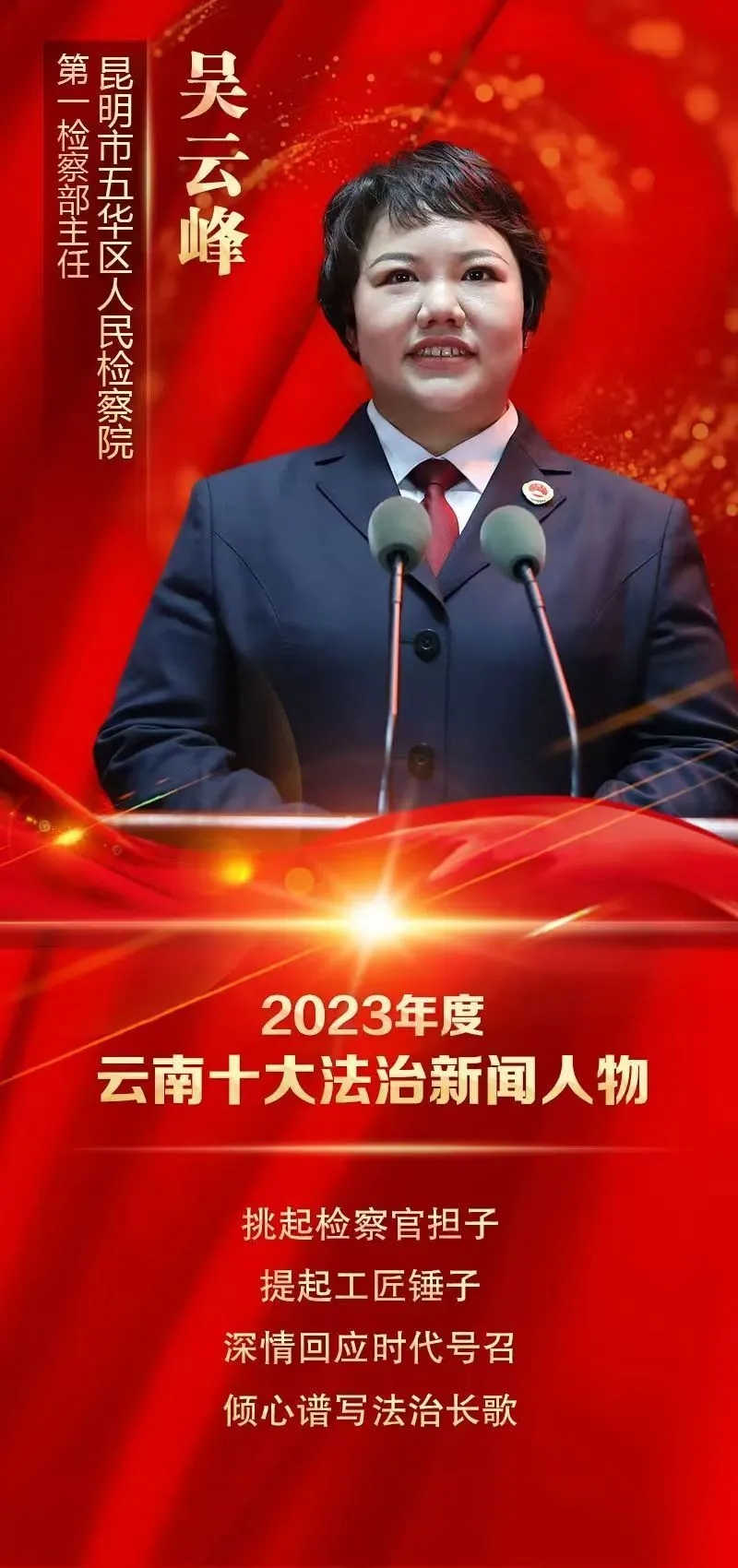 吴云峰牵头在全省挂牌成立首个“和润”刑事和解工作室,探索搭建检察环节多元纠纷化解平台,30余件案件在检察环节达成和解。她还牵头与昆明市五华区人民法院在昆明市公安局交警支队涉车犯罪侦查大队成立醉驾案件一站式办理中心,探索以社会危险性量化评估为核心、醉驾案件办理及溯源治理为切入点、其他轻微刑事案件为重点的轻罪治理模式。