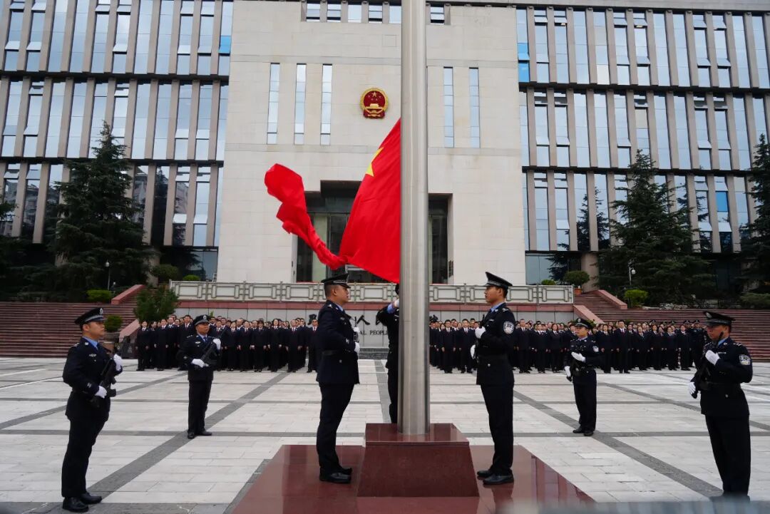 此次升旗仪式,院领导班子成员、全体干警参加。
