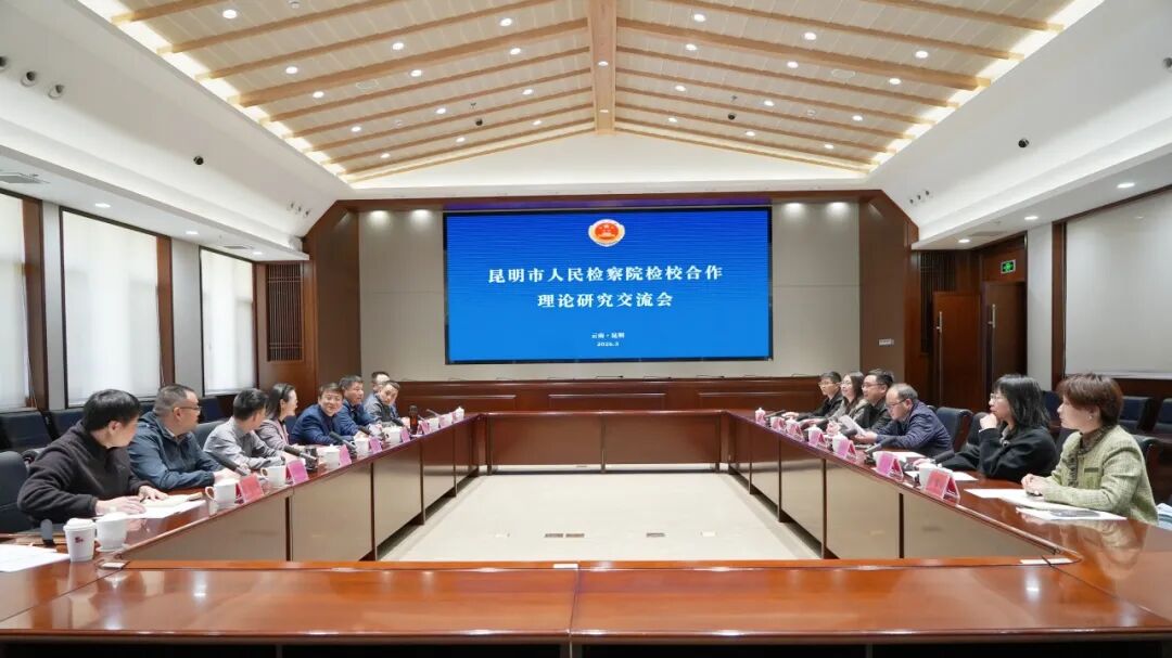 3月19日,昆明市人民检察院召开检校合作理论研究交流会,邀请7位高校法学理论挂职专家参会,共商检察理论研究重点方向,共谋检察工作高质量发展良策。市检察院党组副书记、副检察长欧灵军主持会议。